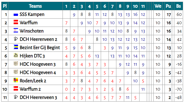 Qua rating bezet SSS vooraf met de opgegeven spelers de 1e plaats vóór Warffum,Hijken DTC3 en DCH Heerenveen 2